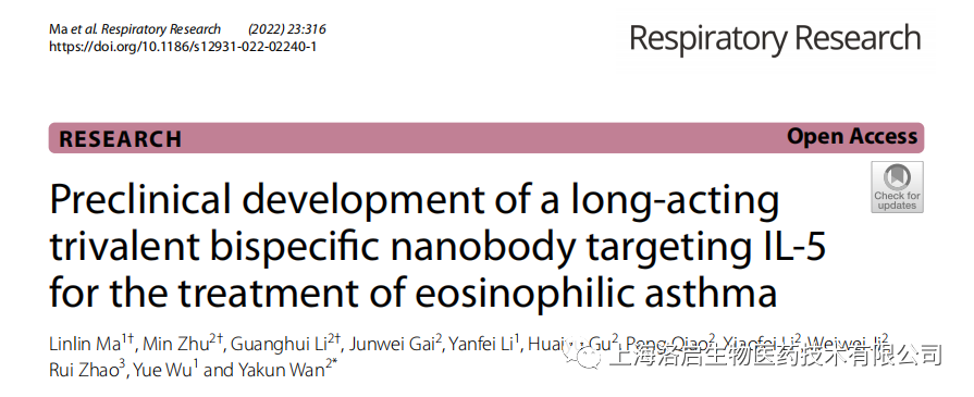 近期,由九州ku游官网生物主导开发的长效IL5纳米抗体,可用于治疗嗜酸性粒细胞性相关疾病,包括嗜酸性哮喘(EOS-Asthma)、高嗜酸性粒细胞综合征(HES)和嗜酸性肉芽性多血管炎(EGPA)等。相关研究成果发表于《Respiratory Research》杂志,题为“Preclinical development of a long-acting trivalent bispecifc nanobody targeting IL-5 for the treatment of eosinophilic asthma”(IF=7.162)。本文通讯作者为上海九州ku游官网生物万亚坤博士。