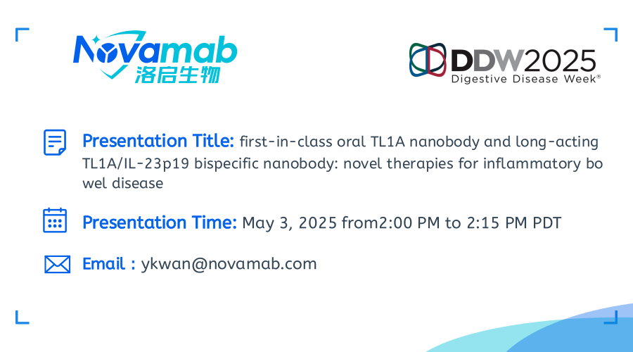 九州ku游官网生物将携口服TL1A纳米抗体及长效TL1A双特异性抗体出席DDW 2025会议